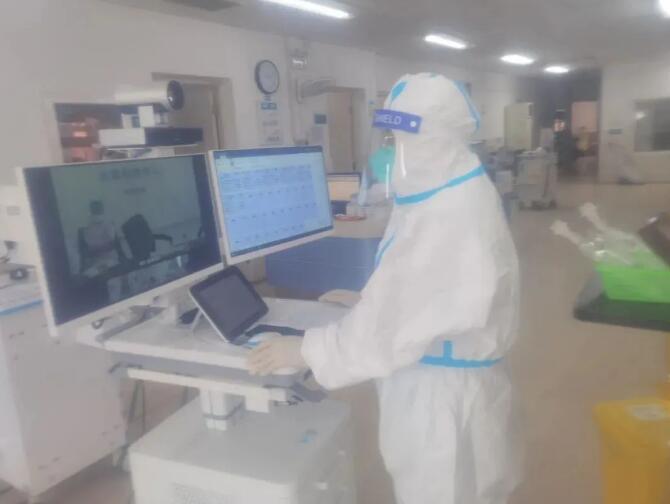 4月28日,上海电视台新闻综合频道报道“嘉定南翔医院智慧医疗中心”的相关内容,引起了较好的社会反响。自4月18日起,上海市南翔医院成为嘉定区封控区、管控区居民及密接人员的唯一定点救治医院。截至目前,共接收2500多名紧急就医患者,收治120多名住院患者,完成各类手术、穿刺、介入等操作500多例,其中不少是急危重症患者。为做好疫情防控,医院分为两个片区,一部分医护人员身穿“大白”进入封控病区,开展救治,另一部分医护人员则在清洁区,进行常规治疗,避免交叉感染。