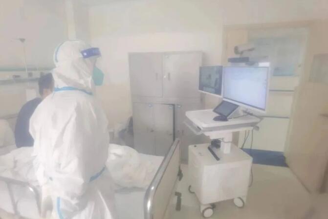 由于只有部分医护人员进入封控病区,患者的疾病又涵盖各个科室,医护人员、专家不能“碰头”怎么办?南翔医院副院长田源介绍,南翔医院启用智慧医疗中心,通过5G技术进行远程视频会诊,弥补短板。
