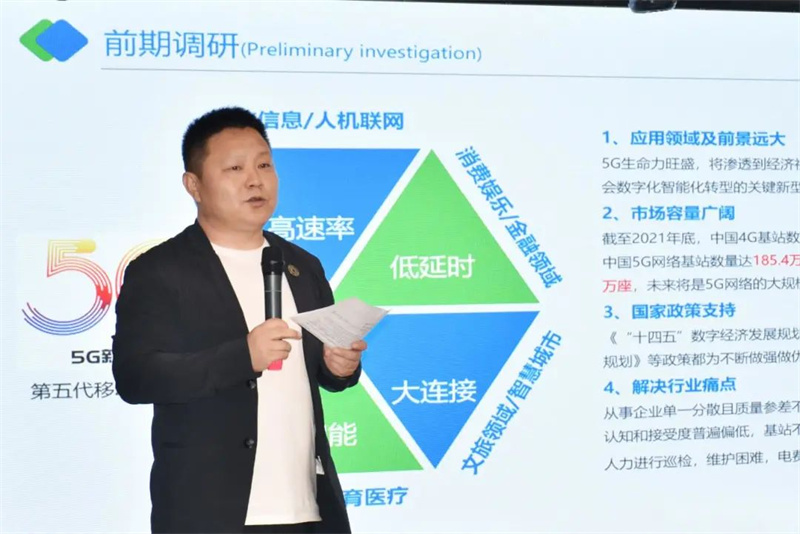 航建集团研发部经理张启伟进行了工作汇报,作为集团发展的核心部门,研发部目前的工作重心是掌握行业最新发展方向,用技术创新手段切实解决运营商痛点。目前航建集团自主研发的新能源智能基站、低碳智能管理系统即将投入运营。