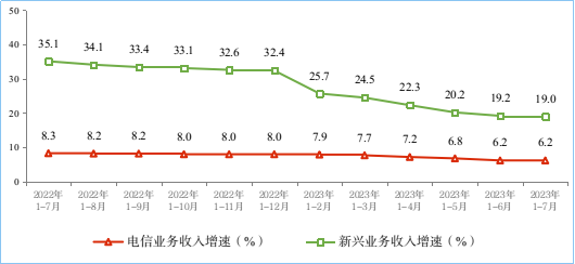 1—7月份,信息通信行业整体运行良好。电信业务收入和业务总量平稳增长,云计算等新兴业务持续发挥拉动作用;5G、千兆光网、物联网等新型基础设施建设稳步推进,网络连接用户规模持续扩大。
