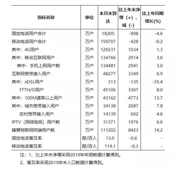 数据指出,互联网宽带接入用户数48277万户,较上年末增长3349万户;100M以上速率以上用户达43162万户,较上年末增长4773万户。