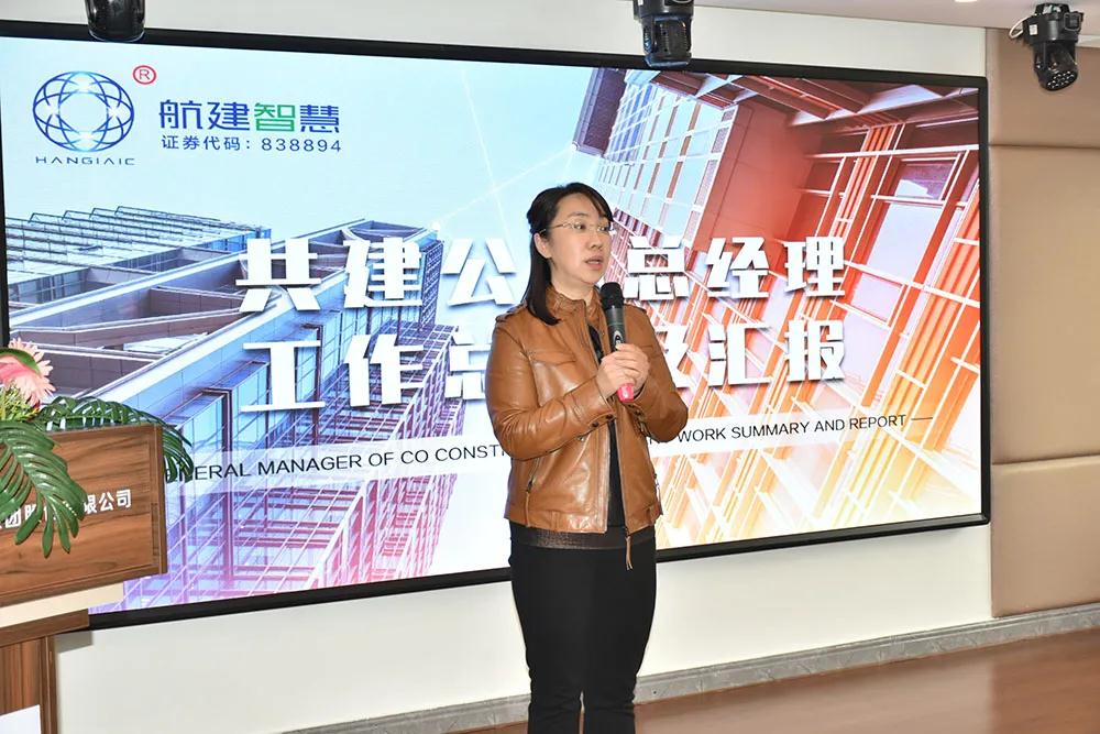 航建集团发展至今共成立了16家共建公司,从成立到发展,各共建公司总经理用勤奋和智慧耕耘,收获了累累硕果,也获得了许多宝贵的经验。航锐总经理马艳女士首先上台,进行了航锐公司经营发展概况汇报及总结,并对航建集团的发展提出了许多建设性的工作建议,例如在工作中建立SOP(标准操作规程),大家纷纷表示赞同。她最后谈到,很幸运我们抓住了时代机遇,乘上了5G快车,享受5G科技变革带来的红利,相信所有人都拿出主人翁的责任感,在于伟董事长的引领下,众志成城,定会成就一番伟大的事业!