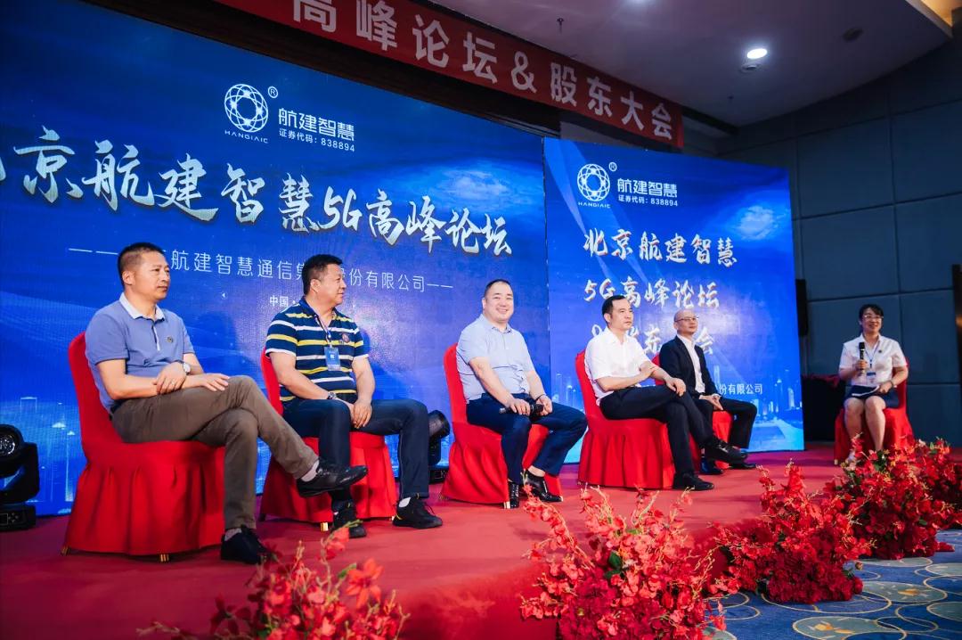接下来,本次大会重要环节之一,《北京航建智慧5G高峰论坛》精彩上演,一众行业大咖,于伟董事长、付小平老师、陈军老师、王学民先生、马艳女士及行业领导立足当下5G发展动向,共论未来发展。全程围绕同行和股东的热点问题,论坛持续进行了30分钟,堪称5G行业干货盛宴。