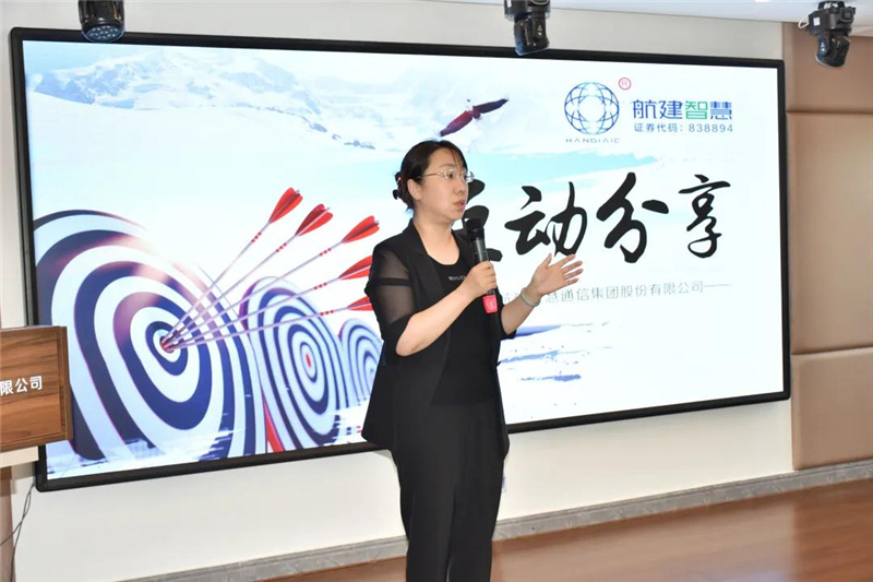 随后,航建集团发展部副总经理,同时也是吉林市航锐通讯有限公司总经理马艳分享了自己加入航建的心路历程,她谈起当初做选择时的种种顾虑,谈起近几年航建的飞速发展,马总说,很感谢当初做出的正确选择,感谢航建这个伟大的企业,为每个普通人提供了参与5G事业的平台,质朴的语言、真挚的情感,感染了在场的每一个人。