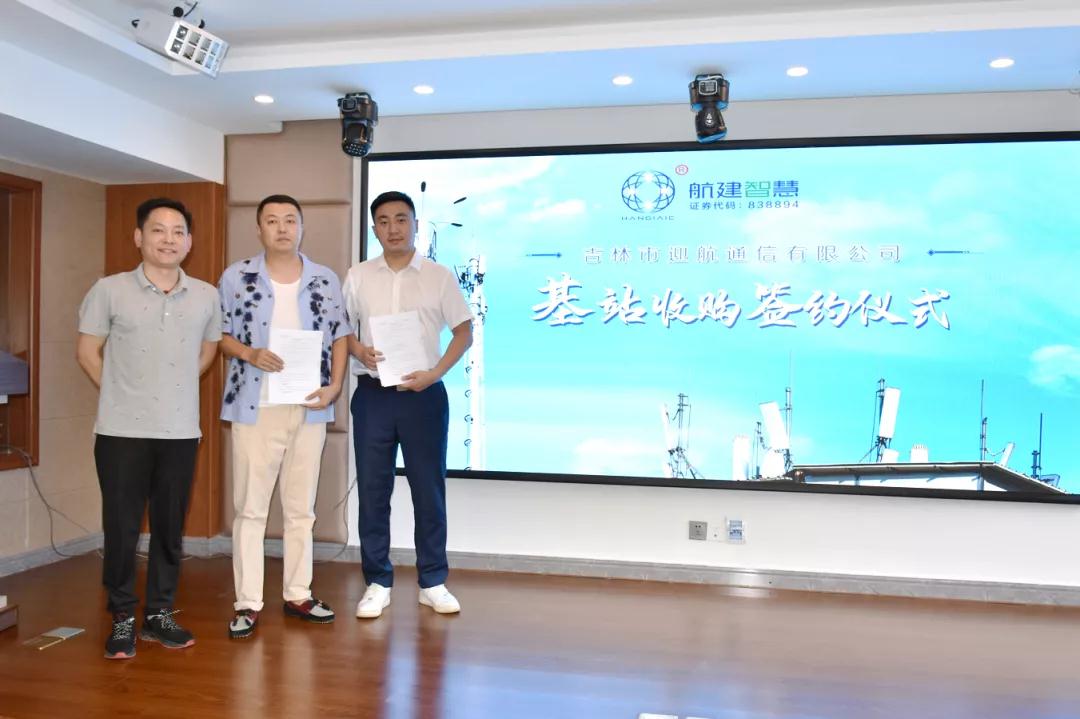 8月18日,阳光明媚,风和日丽,航建集团联营公司又迎好消息,吉林市迎航通信有限公司成功收购通信基站三座,签约仪式在5G展示中心三楼会议室成功举行。同日,吉林市航晨通信有限公司也进行了购塔签约仪式,成功收购基站两座。