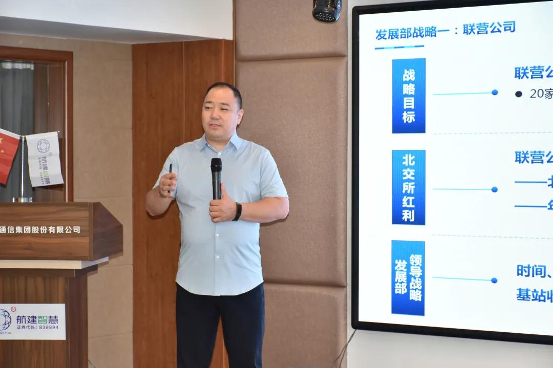 为进一步推动集团战略升级,抢抓市场变革机遇,打造通信行业标杆品牌,9月9日,航建集团在5G展示中心三楼会议室组织召开发展战略会议,航建集团董事长于伟、集团高管团队及各部门经理共同出席了本次会议。