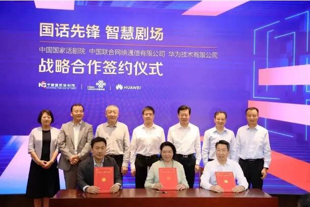 活动现场,在文化和旅游部副部长李群的见证下,中国国家话剧院院长田沁鑫、中国联通集团政企BG高级副总裁(常务)方一明、华为公司联通系统部部长张冰代表三方签署了战略合作协议。根据协议,三方将在文化和旅游部的指导下,以“文化产业数字化战略”为指引,发挥各自优势,共同探索和实践文化产业与5G、大数据、云计算、人工智能、高新视频等新技术深度融合,让传统舞台艺术在科技赋能下,观赏体验更丰富,文化传播更广泛,以高质量文化供给增强人民群众的文化获得感与幸福感,为文化强国建设贡献力量。