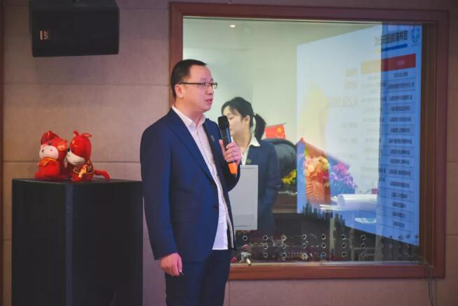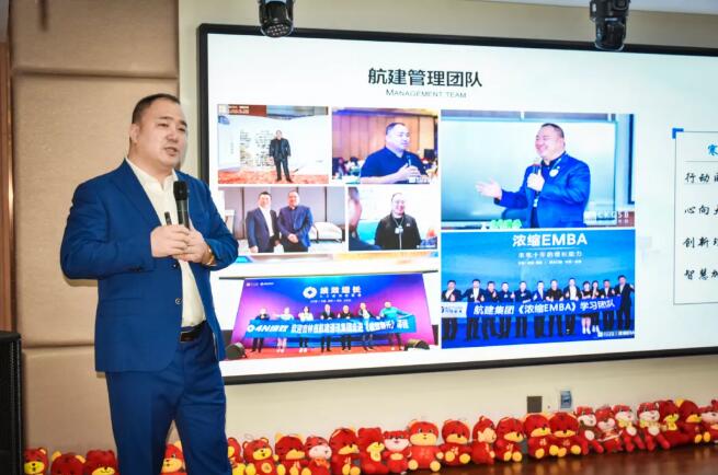 航建集团董事长于伟上台致辞,于董从航建的发展历程谈到集团的定位、战略和未来,并和大家分享了一个好消息,航建即将乔迁新址。期待2022年航建在新的办公大楼开启全新的征程。