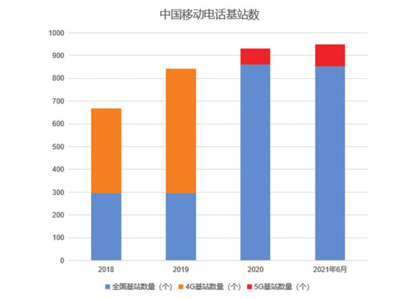 移动:截止2021年6月,中国移动已开通5G基站超过50万站,发展5G套餐客户超过2.5亿户、网络客户超过1.2亿户,拓展行业龙头示范项目超过200个、5G商业化项目超过4000个,布局9大行业平台。